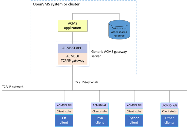 To help ACMS customers address these challenges and to allow customers to get the most out of their legacy ACMS-based applications, VMS Software Inc. (VSI) has recently updated the original TPware and ACMSDI gateway products to provide new and improved facilities for interacting with ACMS applications in a secure and reliable fashion from multiple client operating systems using modern programming languages such as C, Java, Python, C#, PHP, and Lua. This document briefly describes these updates and provides simple examples of how the new and updated features can be used. The updated software is freely available to all ACMS customers, and VMS Software Inc. can provide services to help customers make the best possible use of the updated ACMSDI software package?.